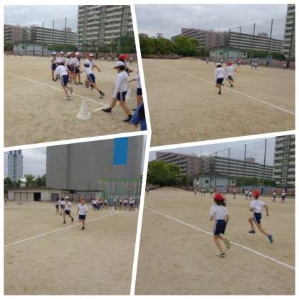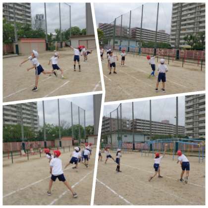 4年生が体育で、スポーツテストに向けての学習に取り組んでいました。2組は「ソフトボール投げ」を行い、3組が「50m走」をしていました。「遠くに投げる」や「速く走る」ためのポイントを確認しながら、それぞれの学級で学習を進めていました。