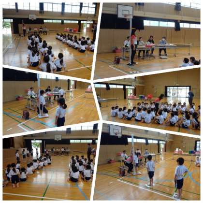 全学年を対象に、体育館で発育測定が行われました。1年生にとっては初めての測定になります。2年生以上の学年の子どもたちにとっても、自分の成長を確認できるとても大切な機会になります。