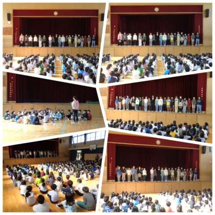 前期代表委員の任命式が講堂でありました。代表委員は4年生以上の学級代表と委員会の委員長・副委員長で構成されます。学級や委員会を代表する人たちだけあって、自己紹介のあいさつもとてもしっかりとできていました。それぞれの立場で、学校の中心となって活躍することを期待します。