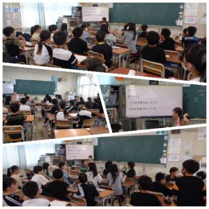 6年生が来月の6日・7日に実施する修学旅行に向けての取り組みを進めています。1組は、教室であいさつの担当などを決めていました。2組は、宿舎やバスで行うレクリエーションについて話し合っていました。3組は、第2音楽室でスペイン村での活動について考えていました。