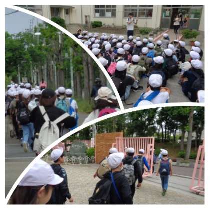 5年生が遠足で東大阪市にある花園中央公園に行きました。少し雲の多い空模様でしたが、子どもたちは予定通り学校を出発しました。