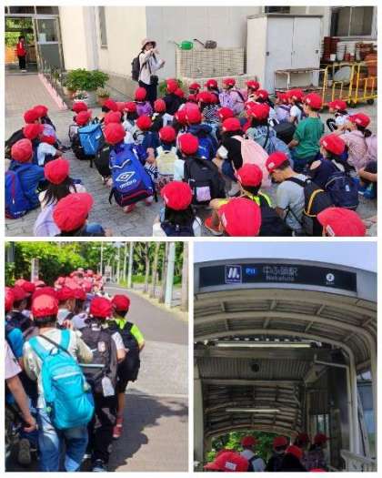 3年生が大泉緑地に遠足に行きます。出発の様子です。