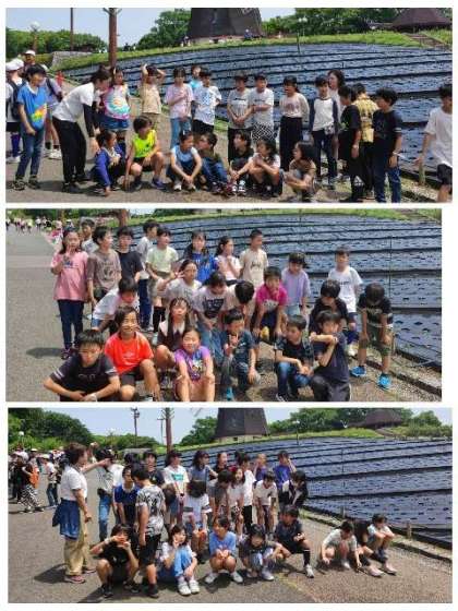 風車の丘に到着して、すぐに学級ごとに記念写真を撮影しました。