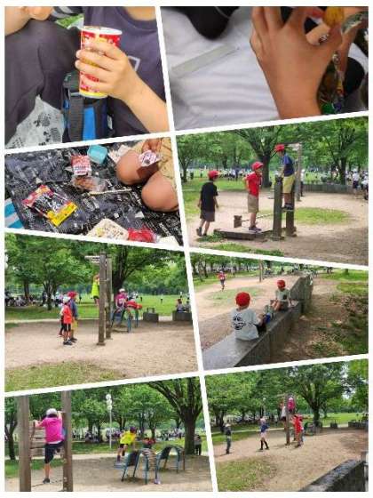 お弁当を食べ終わった人から、おやつタイムになります。食後は、近くの遊具で遊んだり、木陰でゆっくり過ごしたりと、思い思いの時間を過ごしています。