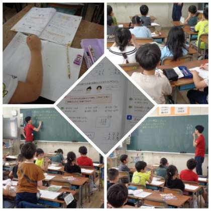 3年生が算数の学習で、十の位から繰り下がりのできないひっ算のし方について考えていました。402−238の問題について、見通しを立てながら計算方法について話し合っていました。