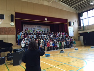 5・6年生の学習発表会は「ハーモニー115」と題して様々な合唱や合奏を行いました。最後は、保護者の方と共に「明日があるさ」を合唱してたいへん盛り上がりました。
