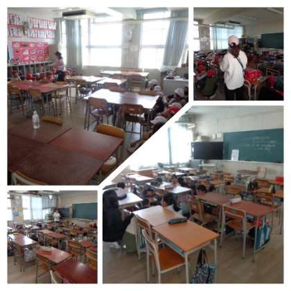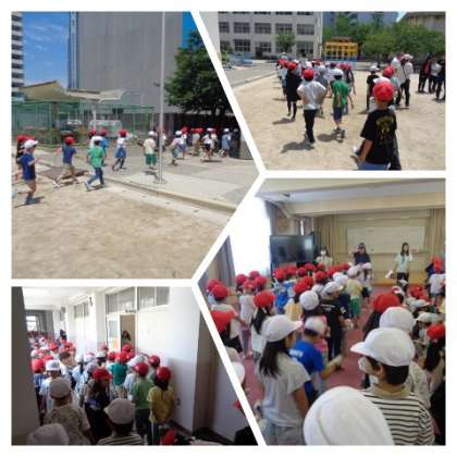 一次避難完了後に、大津波警報発令に伴い校舎の4階に避難場所を変更する「二次避難」の訓練も行いました。