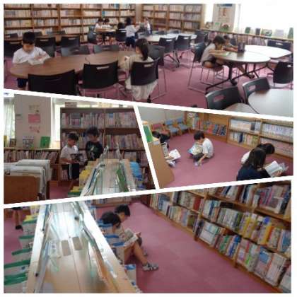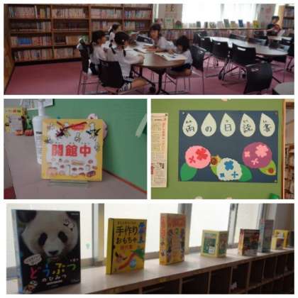 先日お伝えしたさくらスマイルの活動とは別に、図書委員会でも図書室の開放を行っています。本日は晴天のため、利用する子どもの数も少なめですが、休み時間のひとときを、本に親しんでいる姿がみられました。