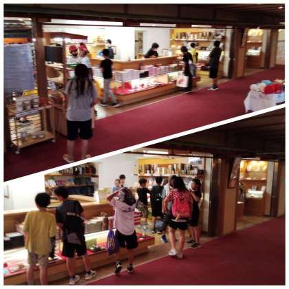 入所式を終えて、部屋に入りました。入室後に避難訓練をして、入浴になります。入浴に並行して、お土産の購入などもしました。この後、夕食になります。