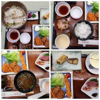 夕食のメニューです。食べきられるか心配になるほど、盛りだくさんです。伊勢の郷土料理である「手こねずし」もありました。