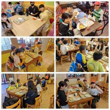 スペイン村での昼食は、ミールクーポンを活用して、グループごとにお店を選んで食べましす。食べるタイミングも、グループで話し合って決めます。カレーやラーメン、ハンバーガーやピザなどが選べるようになっていました。