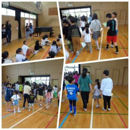 閉会式の様子です。さくにこフェスティバルのめあてである「最高なフェスティバルで みんなの笑顔をさかせよう」の通り、全員で楽しい時間を過ごすことができました。閉会式の後は、6年生の人たちが1年生を教室まで送っていきました。