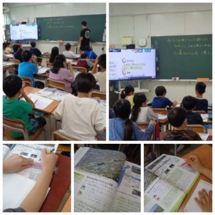 4年生が社会科で、水の学習に取り組んでいます。安全な飲み水をつくる浄水場の仕組みについて、資料をもとにして考えていました。