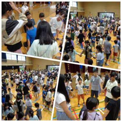 今週の児童集会では、たてわり班で昔懐かしい「かごめかごめ」をしました。音楽が終わったときに、真後ろに立っている人の名前ではなく学年を当てるというルールで、楽しく遊びました。