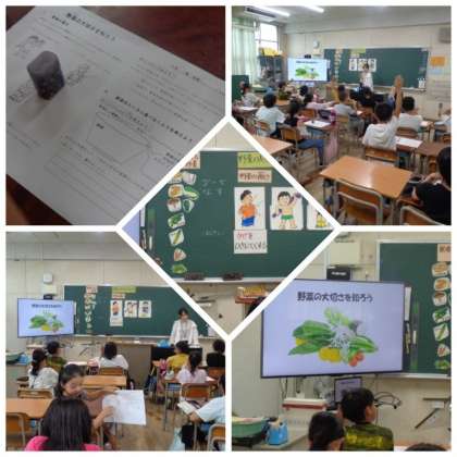 4年生で栄養指導の学習がありました。内容は、野菜のもつ栄養のはたらきや食べることの大切さについてでした。