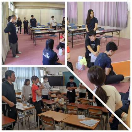 学校では、夏休み期間を利用して各種の研修会を行います。夏休み初日である本日、本校の指導養護教諭、栄養教諭、保健主事が講師を務め「食物アレルギー危機対応」や「急病発生時の対応」について学ぶ「危機管理研修会」を行いました。第2音楽室での講義のあと、緊急対応発生を想定した実地訓練を行い、救急車要請など各所への連絡をはじめとした役割分担ごとの動きや対応などについて、教職員間で確認しました。子どもたちの命を守ることに直接つながるという思いをもって、参加者全員が研修に取り組んでいました。