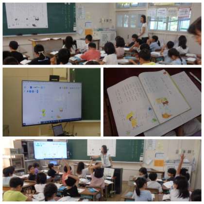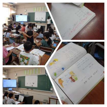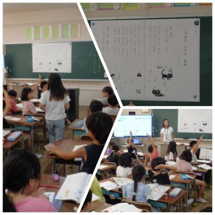 言葉の響きやリズムなどに気をつけながら、「いろんなおとのあめ」の詩を読んでしました。音読と同時に、詩に使われている擬音語の面白さに着目しながら、オリジナルの「いろんなおとのあめ」を作ることにもチャレンジしていました。