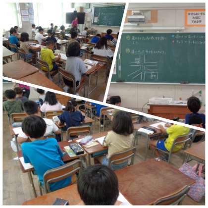 3年生が算数で長さについて学習していました。簡単な道路図をもとに、きょりと道のりの違いについて考えていました。