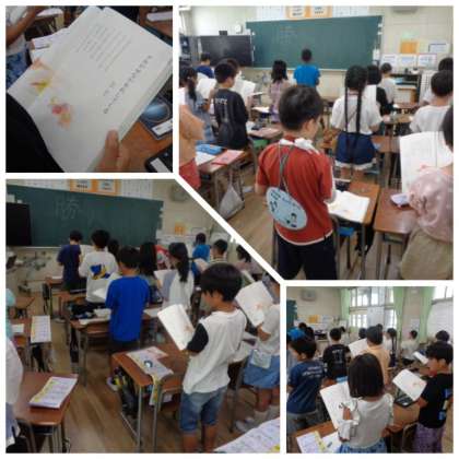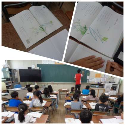 3年生が国語で詩の学習に取り組んでいました。「夕日がせなかをおしてくる」の詩を音読したり、「紙ひこうき」の詩の構成について考えたりしていました。