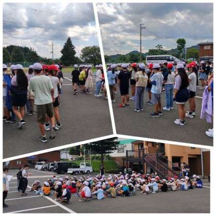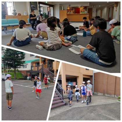 各自が部屋に入って荷物を片付けている間に、今後の予定などの確認のため、ロビーでリーダー会議がありました。各部屋のメンバーに必要事項を伝えた後、避難訓練をしました。