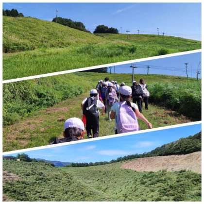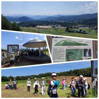 途中で風穴の見学や休憩をはさみながら、山頂に到着しました。神鍋山は昔の火山で、山頂には広大な火口が広がっていました。