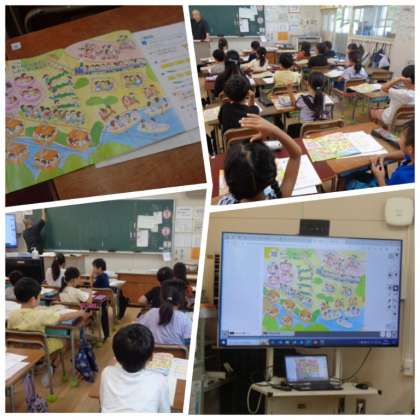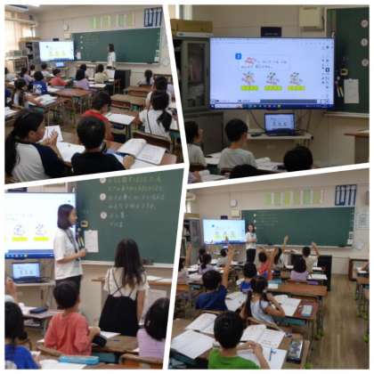 3時間目の2年生の学習の様子です。1組も2組も算数の学習に取り組んでいました。同じ数ずつまとまっているときの表し方について、考えていました。