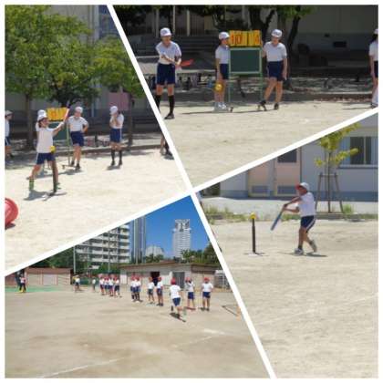 2時間目に6年生が体育の学習でティーボールをしていました。9月とは思えない連日の猛暑の影響で、体育の学習にも神経を配る必要があります。特に外での活動は、朝の早い時間に行うようにしています。