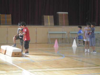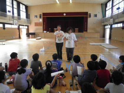 4年生は、10月10日に講堂で、アイマスク体験をしました。体験を通して、子どもたちは目の不自由な方の立場に立つと普段歩いている何気ない道でも歩きづらく、介助の人の声かけが大切なことに気づいていました。