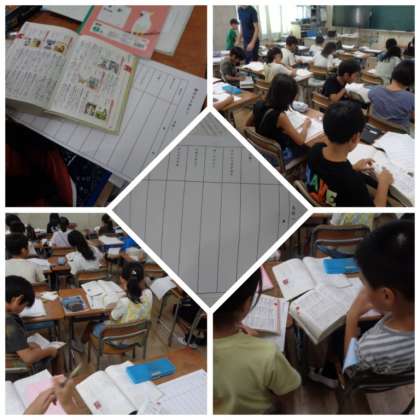 3年生が国語で慣用句の学習に取り組んでいました。プリントに書かれた慣用句の意味を、辞書を使って調べていました。