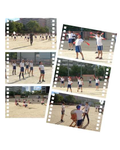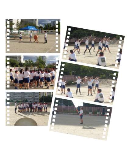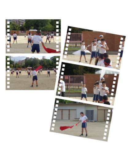 各学年の運動会の練習と並行して、応援団も日々練習に励んでいます。応援団は、主に放課後の時間を使って練習をしています。写真は、運動場での練習風景です。団長を中心に団員一人ひとりの力強い声が、運動場いっぱいに響いていました。