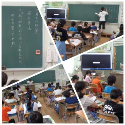 4年生が国語の学習で物語の読み取りに取り組んでいました。「花さき山」の全文を聴きながら、登場人物の思いについて考えていました。