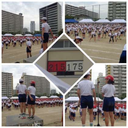 整理体操と閉会式の様子です。整理体操では、保健委員会が考案した桜小オリジナルの姿勢体操を行いました。今年の運動会は、赤組の勝利で幕を閉じました。