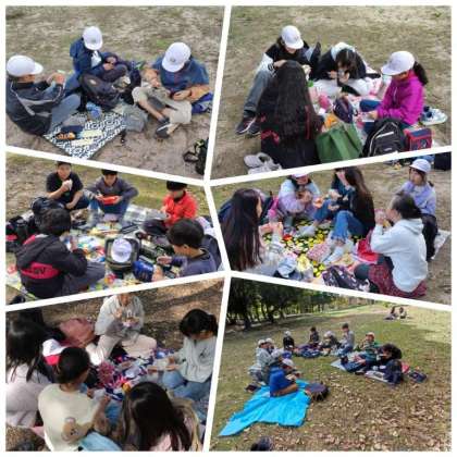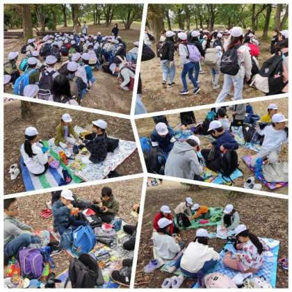 民族学博物館での見学の後は、お楽しみのお弁当の時間です。肌寒さもありましたが、しっかりいただきました。