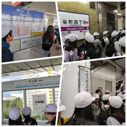 モノレールや地下鉄など、たくさんの乗り物を乗り継いで、学校に戻りました。ハードな道のりでしたが、みんな元気に帰ってきました。