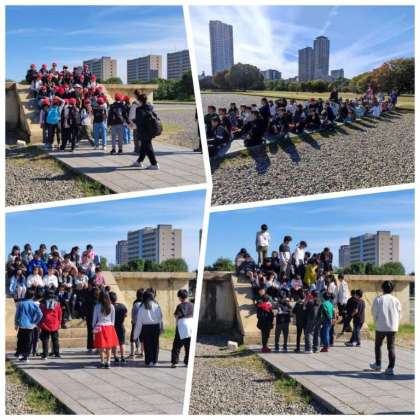 午後からの活動場所である歴史博物館に移動する途中で、クラス写真を撮影しました。