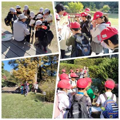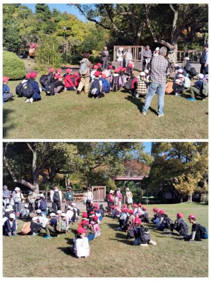 植物園では、グループに分かれて活動しましす。園内での植物の観察は、ボランティアグループ「この指たかれ」の方々に案内していただきました。