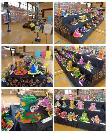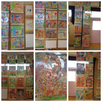 今年度も個人懇談会の日程に合わせて、講堂で作品展が開かれています。ご覧になられた方もお以下と思いますが、ホームページでも振り返りたいと思います。初めに、1年生と2年生の作品です。