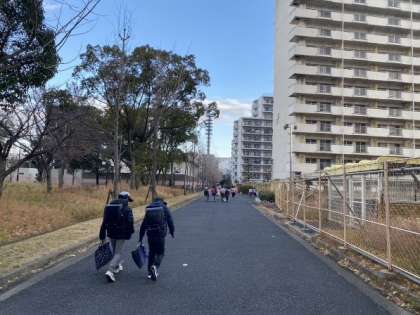 冬休みが終わり、3学期の始業日に登校の見守りをしました。小雪が舞う中、子どもたちは新年の挨拶をしたり冬休みの思い出を話し合ったり、元気に登校している様子が見られました。