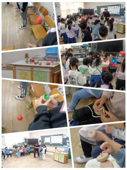 1年生が生活科でむかしあそびについて学習しています。先日のたこあげに続いて、講師の先生からむかしの遊びについて学ぶ、出前授業がありました。授業では、けん玉やコマ回しにチャレンジしました。1年生のみんなにとっては、コマを回すためにひもをまく作業が特に難しかったようです。コマがうまく回ったときは、大きな歓声が上がっていました。