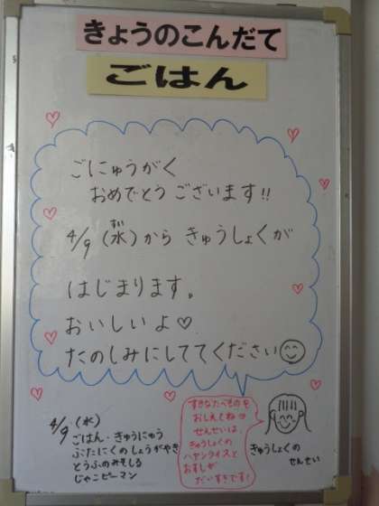 初めての献立(4月9日)