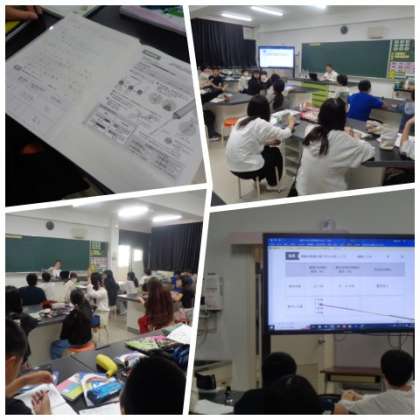6年生が理科でものが燃えるしくみについて学習していました。ものを燃やした後の空気に含まれる酸素と二酸化炭素の量の変化について、実験結果から考えていました。