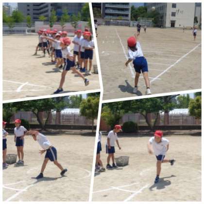 スポーツテストも2日目です。3時間目に快晴の運動場で4年生が「50m走」と「ソフトボール投げ」の2種目の計測をしていました。