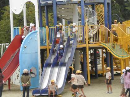 3・4年生は、服部緑地へ秋の遠足に行きました。少し寒いぐらいでしたが、大型遊具で思いっきり遊んで、とても楽しい遠足になりました。秋の遠足では3・4年生で仲良くオリエンテーリングもしました。違う学年の子どもたちとも友達がたくさんできました。たっぷり遊んだので、お弁当は、とても美味しくて大満足でした。