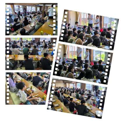陶芸体験の活動が終わり、昼食の時間です。昼食も宗陶苑でいただきました。修学旅行最初の食事は、お弁当でした。