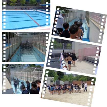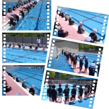 南港桜小学校も昨日からプール水泳の学習が始まりました。今日は1年生が、小学校のプールを使用しての初めての学習に取り組みました。