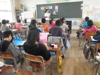 4年生は、社会「47都道府県を覚えよう」と図工「見たこともない おばけ」に取り組みました。都道府県の歌を歌ったり、不思議な形を楽しんだりしました。