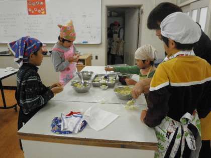 なかよし学級では、11月15日になかよしクッキングをしました。さつまいもをゆでて、つぶし牛乳やバター・砂糖を混ぜて、スイートポテトを作りました。黄身を塗ってオーブントースターで焼くといい香りがして、とてもおいしくできました。