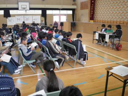 11月17日(月)、南港桜小学校では「朝ごはんの大切さ」をテーマに「学校保健委員会」を行いました。保健委員会の子どもたちが司会をしてスムーズに会が進行しました。本日の講師は本校栄養教諭の山崎 範子先生、御講評は内科校医の浜本 芳彦先生がしてくださいました。パンフレットに載っていた理想の朝ごはんは、給食委員会や保健委員会の子どもたちが、夏休みに自ら作ったものです。また、ご講演いただきました先生方のお話はとても分かりやすく、勉強になりました。南港桜小学校の子どもたちが主食とおかずの朝ごはんをしっかり食べて登校してほしいと思いました。