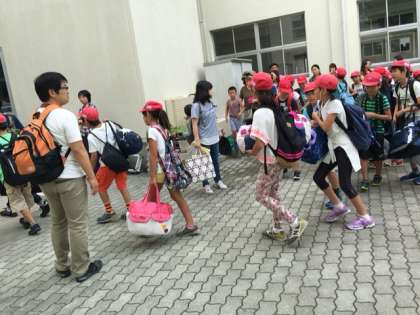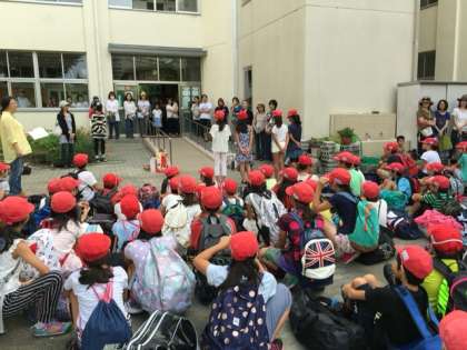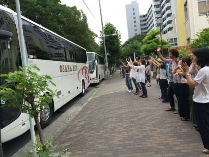 7月24日、南港桜小学校の5年生66名は、鉢伏高原への林間学習に元気に出発しました。保護者や教職員に見送られてバスが出発しました。