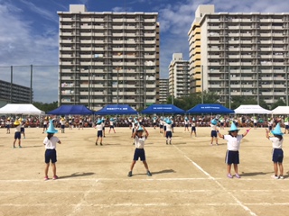 2年生は、団体演技で可愛いダンスを披露しました。手作りの帽子がとっても似合っていました。